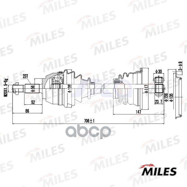 Привод в сборе левый RENAULT LAGUNA I 1.6-2.0 97-01 (GKN 303549) GC01109