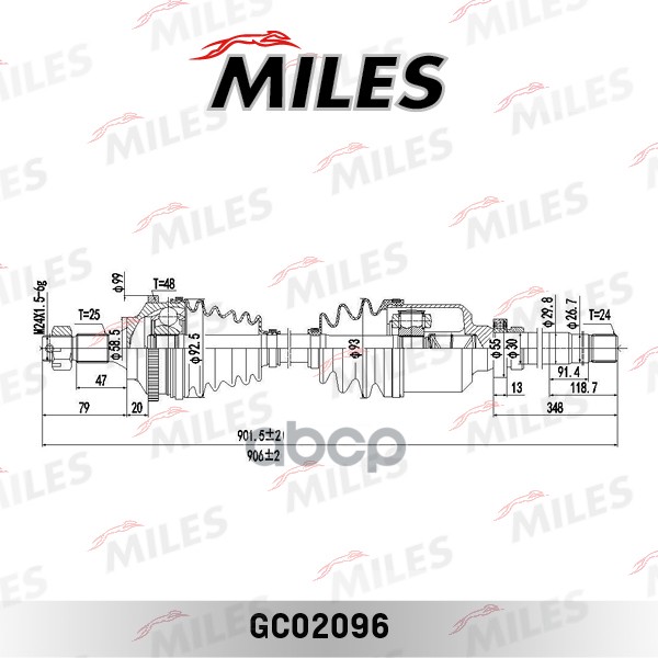 Привод в сборе правый PEUGEOT 406 1.6-2.0 95-04 (ABS) (GKN 303489) GC02096
