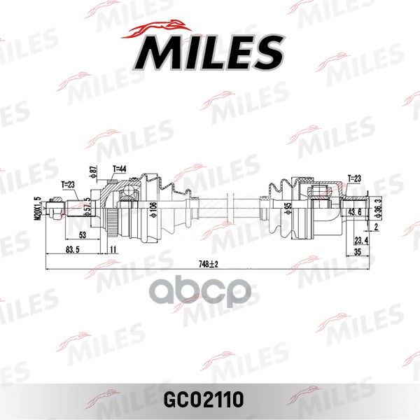 Бренд: Miles, артикул: GC02110, Привод в сборе правый RENAULT LAGUNA I 1.8-2.0 95-01 (ABS) (GKN 302907) GC02110. |