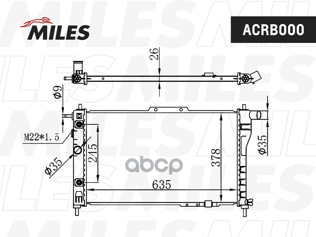Радиатор CHEVROLET LANOS 97- 1.5/1.6 MT/ ZAZ CHANCE 09- 1.3 (для а/м с A/C) паяный ACRB001
