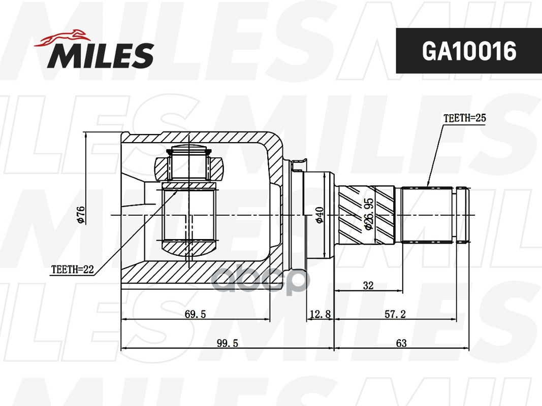 ШРУС SKODA FABIA/VW GOLF/POLO/BORA 1.4-2.3 98- внутр. MILES GA10025 661005;GI0118;PCV5002;6Q0498103D;GS3795;