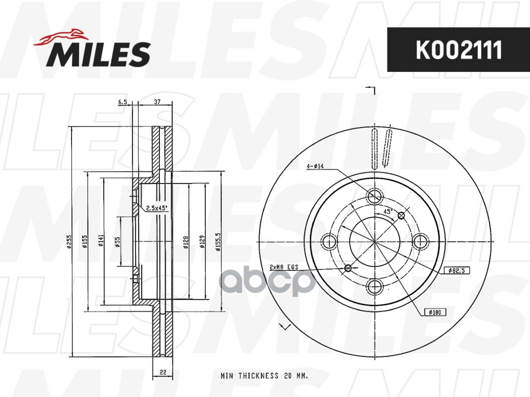 Диск тормозной передний D255мм. вентилируемый GREAT WALL/HOVER/COOLBEAR 1.5 (TRW DF7991) K002111