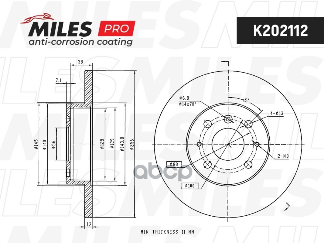 Диск тормозной (серия PRO с антикоррозионным покрытием) GEELY OTAKA (CK-1)/01.07-/1.5 - передний K202112
