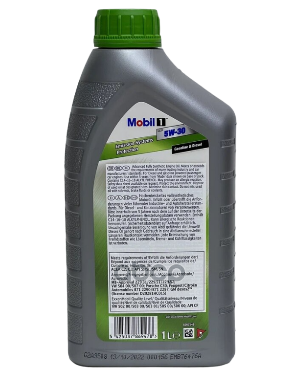 Наименование: Масло моторное синтетическое Mobil 1 ESP 5W-30 1л (154283,154287,154280, 157757) 154279