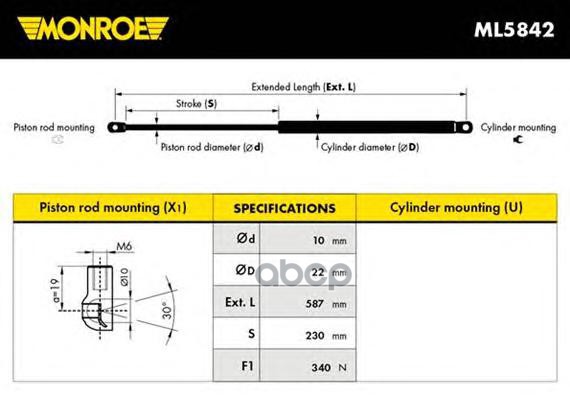 Амортизатор крышки багажника CITROEN C-Crosser 07->,MITSUBISHI Outlander 06-12,PEUGEOT 4007 07-13,SEAT Leon 12->
