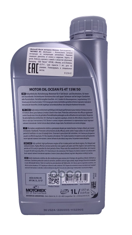 Наименование: MOTOREX МОТО МАСЛО МОТОРНОЕ OCEAN FS 4T SAE 15W50