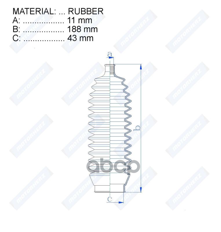 Пыльник рулевой рейки RUBBER (11*188*43) SUBARU, MITSUBISHI, VOLVO