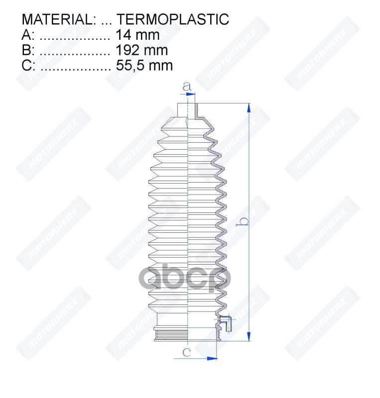 Наименование: Пыльник рулевой рейки TERMOPLASTIC 14x192x55.5 TERMOPLASTIC (14 192 55.5) MAZDA