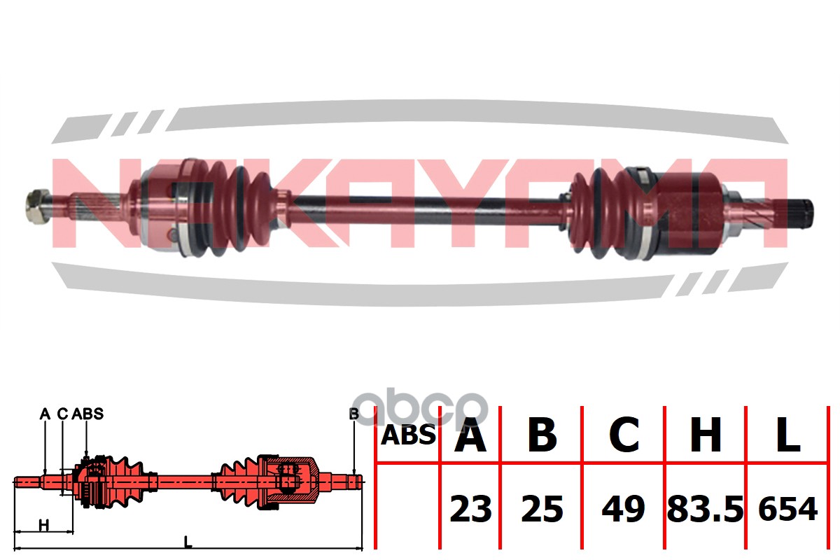 ND2277NY Вал приводной, перед. левый NISSAN MICRA C+C III (CK12E), MICRA III (K12E) 02-10 (23x25x49x
