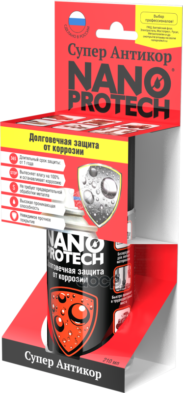 NANOPROTECH™ — это линейка уникальной влагозащитной и антикоррозийной продукции промышленного и бытового использования. При создании каждого средства использованы последние достижения в области нанотехнологий. Сегодня торговая марка NANOPROTECH™ – это лидер в области инновационных технологий по созданию защиты металлических поверхностей, токопроводящих элементов и электронных компонентов от контакта с влагой.