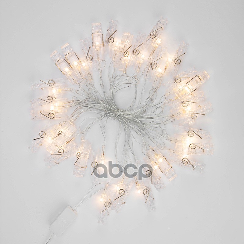 Наименование: Гирлянда светодиодная Прищепки 30 LED, 5 м, теплый белый цвет свечения NEON-NIGH