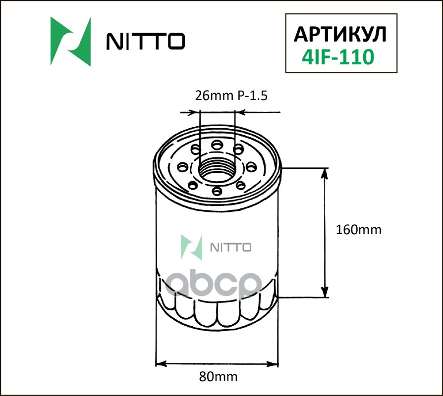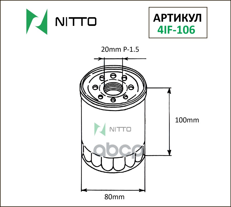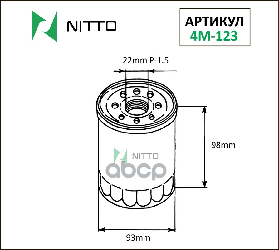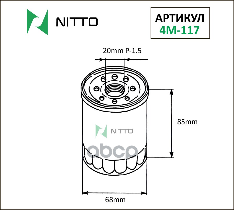 Фильтр масляный Nitto 15208-AA030 / 15208-AA031 / 15208-AA130 / 15208-AA160 / 15208-HC254 / 15208-HC256 / 15208-HC300 / 15208-HC301 / 15400-PCX-004 / 15400-PR3-003 / 15400-PR3-004 / 15400-PR3-014 / 15400-PR3-405 / 15410-MJ0-405 / 26300-35056 / 26300-35500