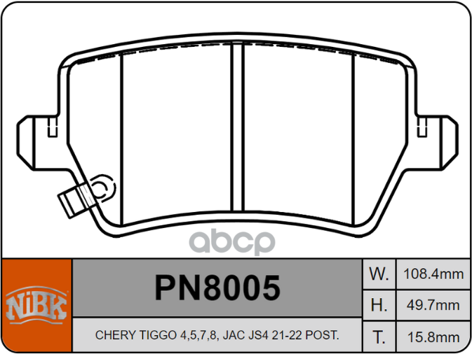 Колодки тормозные дисковые | зад прав/лев | CHERY TIGGO 8 PLUS | TIGGO 8 PRO, Tiggo 8 (T18), TIGGO 5x | TIGGO 4, EXEED (CHERY) VX, TXL, GEELY EMGRAND (SS11), JAECOO J7 (T1EJ) 2023-, OMODA S5 (M1DFL2) PN8005