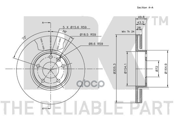 Диск тормозной пер вент305х28 5 отв