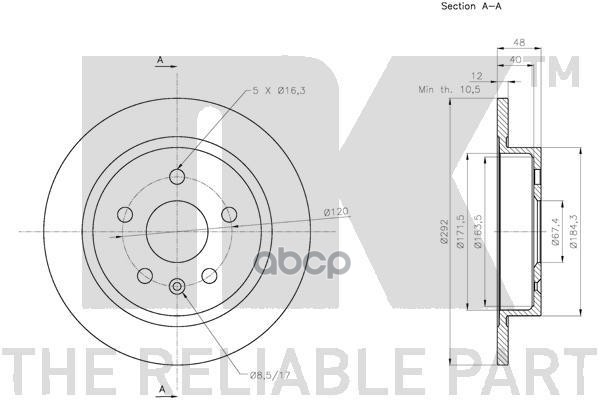 Диск тормозной задний (292x12mm) / Chevrolet Malibu,OPEL Insignia-A,SAAB 9-5 09~