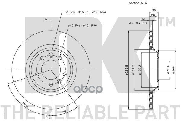 Наименование: Диск тормозной задний (290x12mm) / CITROEN C5,PEUGEOT 407,508,607 00~