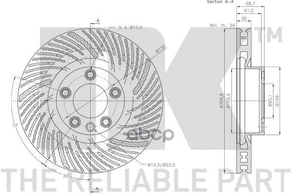 Торм.диск пер.вент.[360x36] 5 отв.R /COATED/