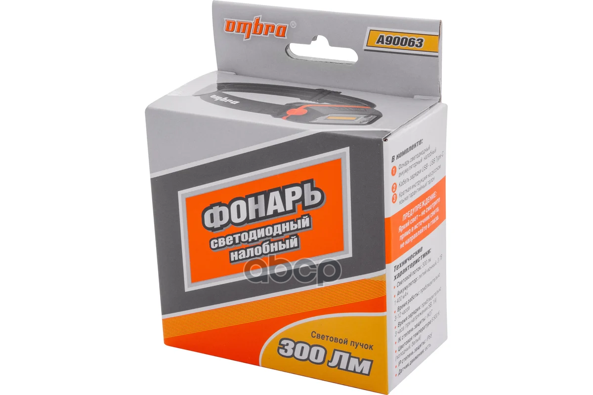 Фонарь светодиодный аккумуляторный, налобный со световым пучком 300 Лм и сенсором Universal
