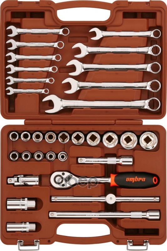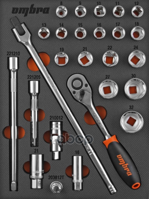 Набор головок 1/2" 26 пр. 6 гр. 8-32 мм с аксессуарами EVA ложемент 280 х 375 мм Ombra OMT26STE