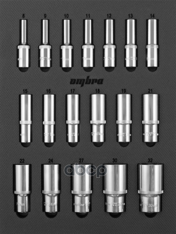 Набор головок глубоких 1/2" 18 пр. 6 гр. 8-32 мм EVA ложемент 280 х 375 мм Ombra OMT18STE
