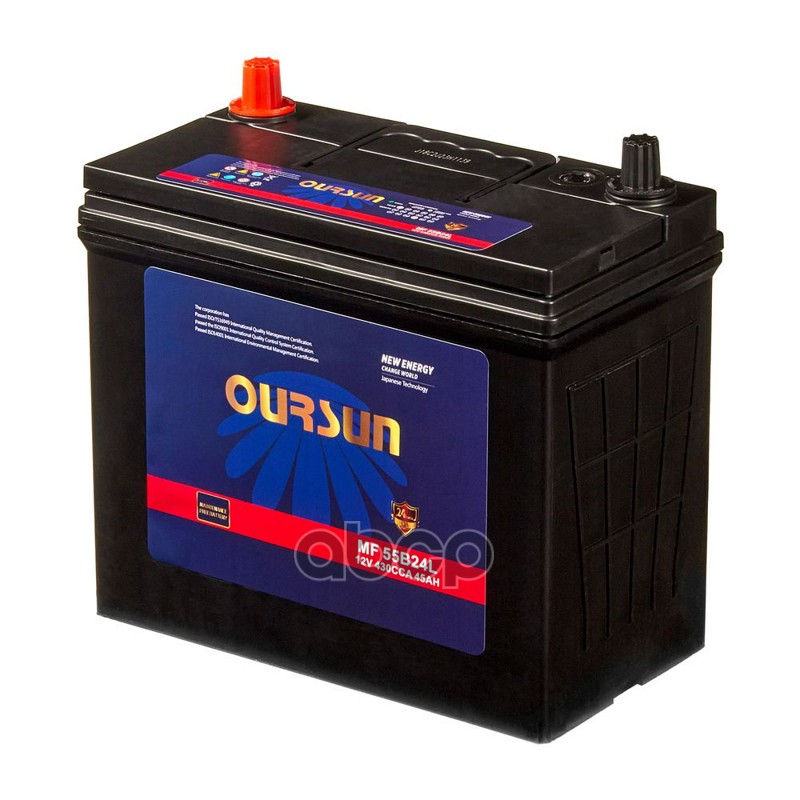 Бренд: OURSUN, артикул: MF55B24L, Аккумулятор OURSUN JIS MF 55B24L.