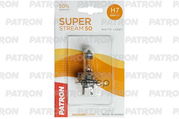 Лампа галогенная блистер 1шт H7 12V 55W 3400K PX26d Super Stream 50 (+50 яркости, стандартный свет,