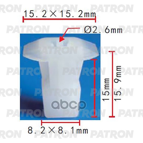 Клипса пластмассовая Применяемость: Пистон молдинга Lexus Toyota D=8.6, T=12.0x11.4, F=10.9x7.2, H=30.6