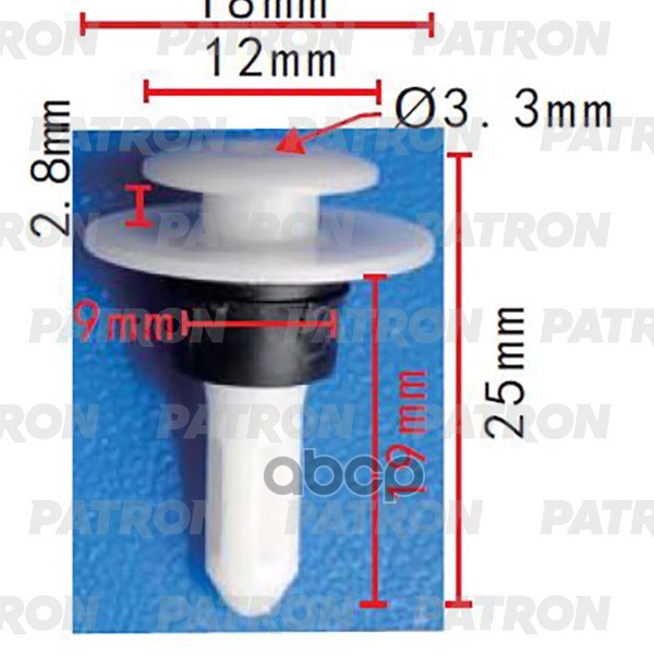 Клипса пластмассовая INFINITI NISSAN Применяемость Пистон молдинга D=25.0, T=15.1x7.6, H=16.5, F=4.