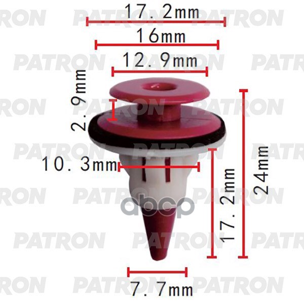 Клипса пластмассовая Nissan Применяемость: Клипса внутренней отделки D=12,9, M=16,0, T=17,2, H=24,0, F=7,7, Fmax=10,3
