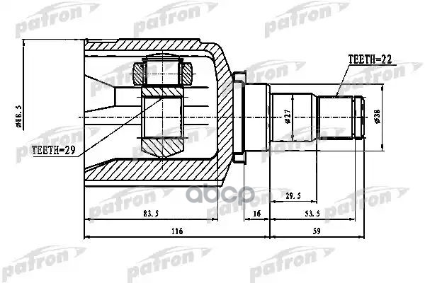 ШРУС наружный 25X55X34 ABS: 29T CITROEN: BERLINGO 2.0 HDI 90 96-, BERLINGO ФУРГОН 2.0 HDI 90 96-, XSARA PICASSO 2.0 16V/2.0 HDI 99- PEUGEOT: PARTNER