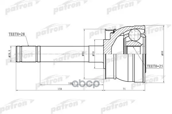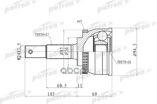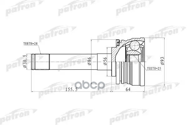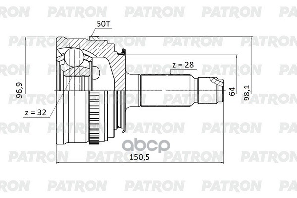 Граната (ШРУС) HONDA CR-V, наружная (с ABS). PCV9574 "PATRON" наружн 28x64x32 ABS:50T Honda: CRV 97-00