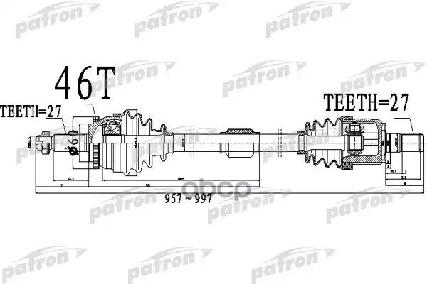 Полуось передний мост справа 27X957X60X27 ABS:46T HYUNDAI ELANTRA [A5] 1,6 11- I30 [A5] 12 - AT
