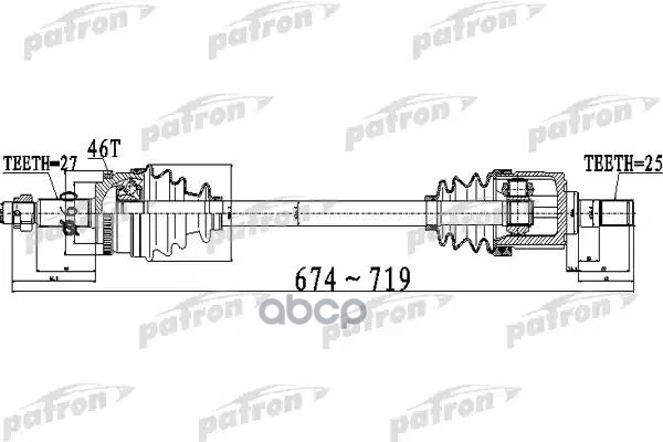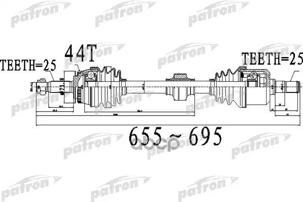 Полуось передний мост слева 25X655X71,8X25 ABS44T HYUNDAI COUPE [CB] 01 - ELANTRA [CA] 00 -