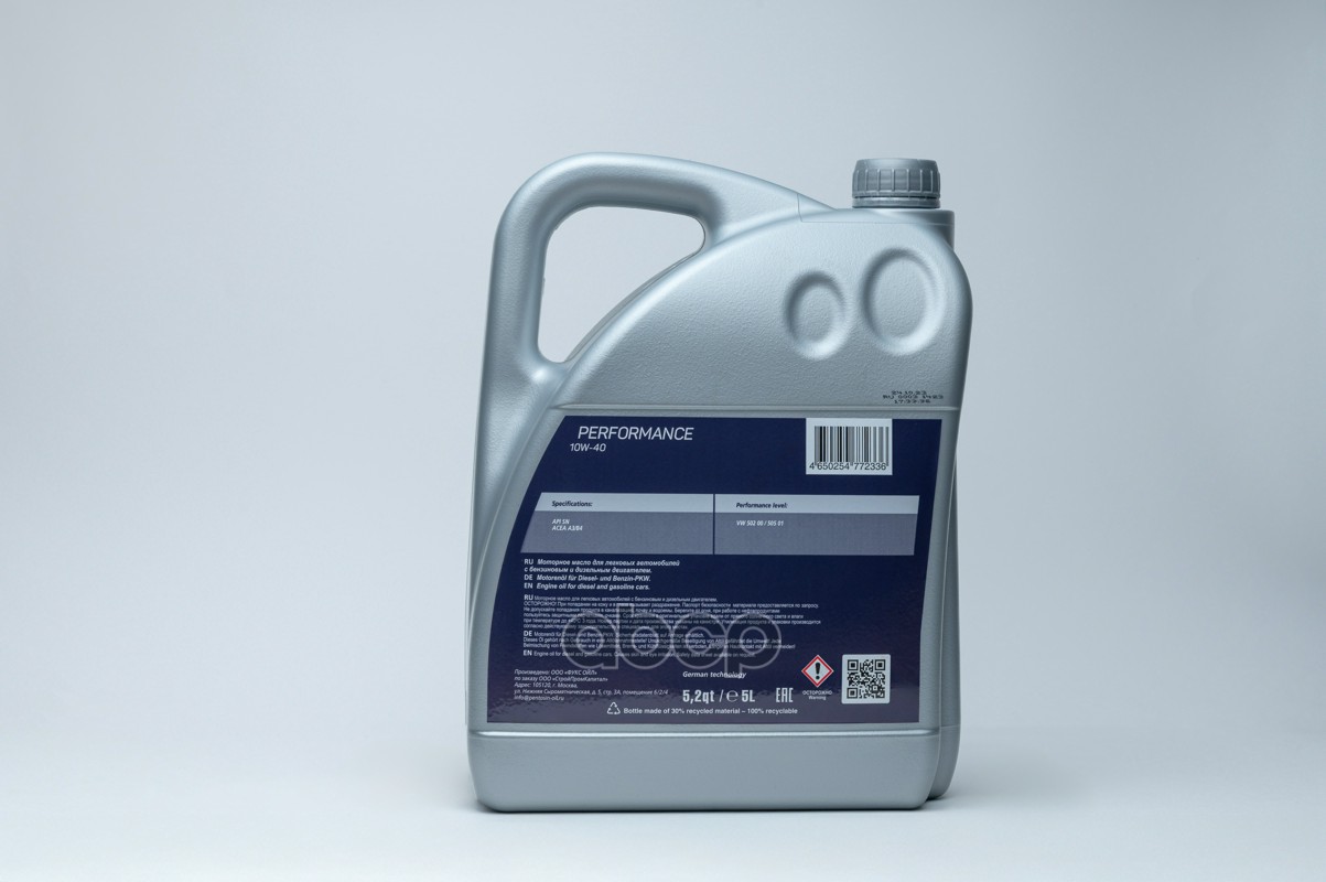 Наименование: PENTOLUB МАСЛО МОТОРНОЕ PERFORMANCE 10W40 5Л