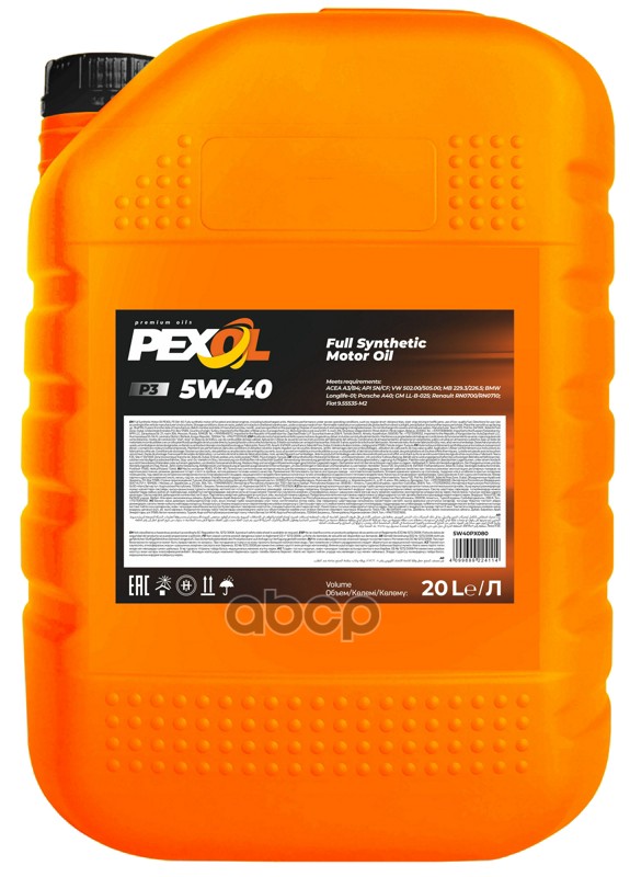 PEXOL P3 5W-40 (20L) масло моторное синт ACEA A3/B4, API SN/CF, VW 502.00/505.00, MB 229.3