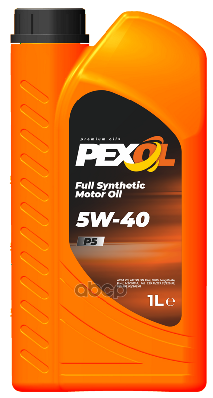 PEXOL P5 5W-40 (1L) масло моторное синт ACEA C3, API SN/CF, VW 505.00/505.01, MB 229.51