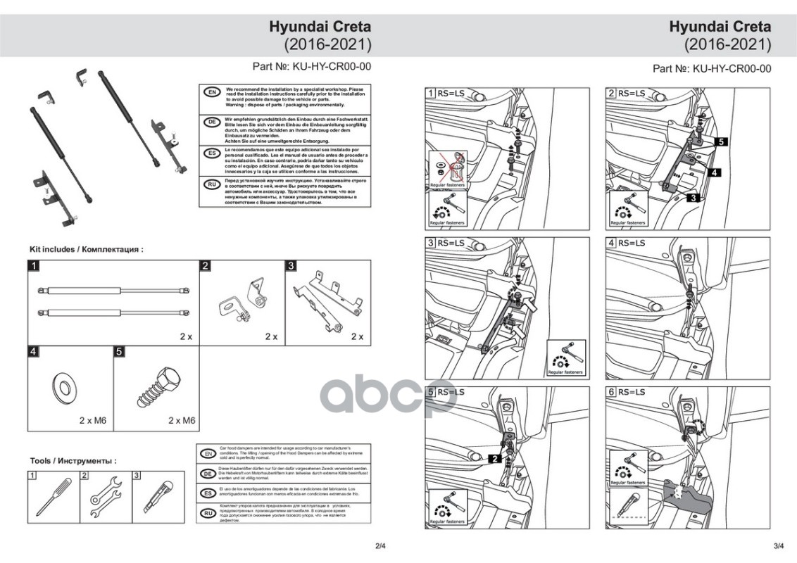 KU-HY-CR00-00_амортизаторы капота! газовые 2 шт Hyundai Creta I 16-21