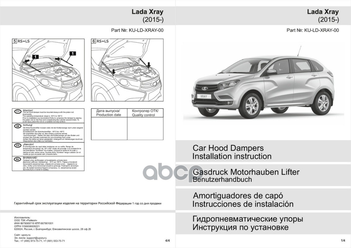 KU-LD-XRAY-00_амортизаторы капота! газовые 2 шт Lada Xray 15>/Xray Cross 18>