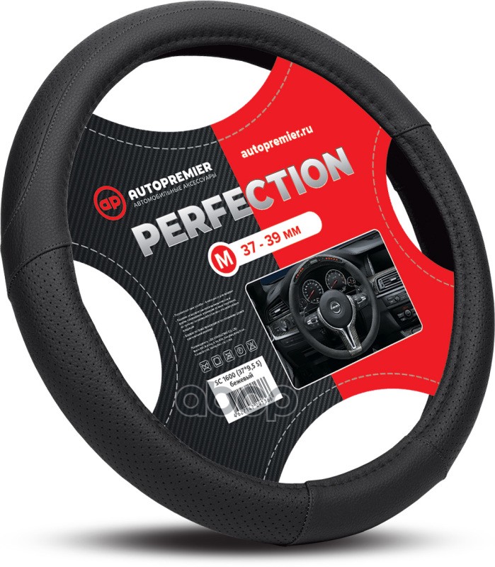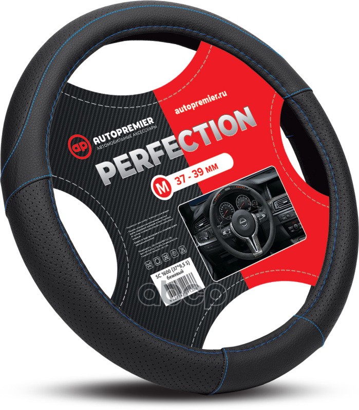 Оплетка руля m d37-39см auto кожа pu, перфорир.вставка,черная fr10