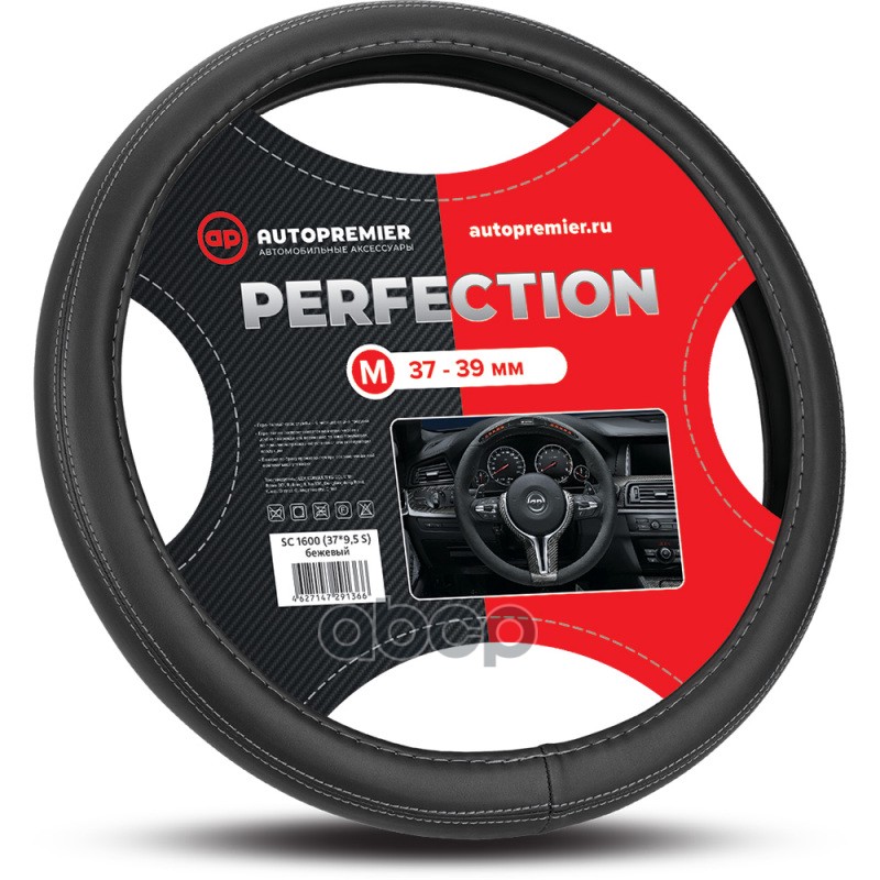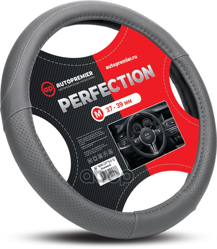 Оплетка руля (M) 37-39см серая экокожа PREMIER