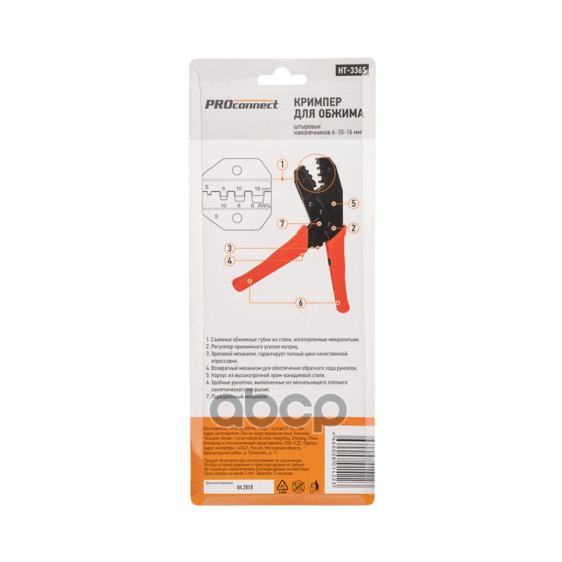 Наименование: PROconnect Кримпер HT-336 S для обжима штыревых наконечников 6.0-10.0-16.0 мм 12