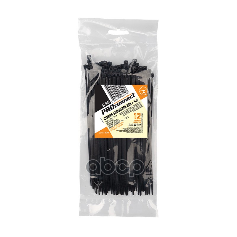Бренд: PROconnect, артикул: 570201, Хомуты-стяжки 200х3.6 мм PROconnect кабельные нейлон (пластик) Черная min100.