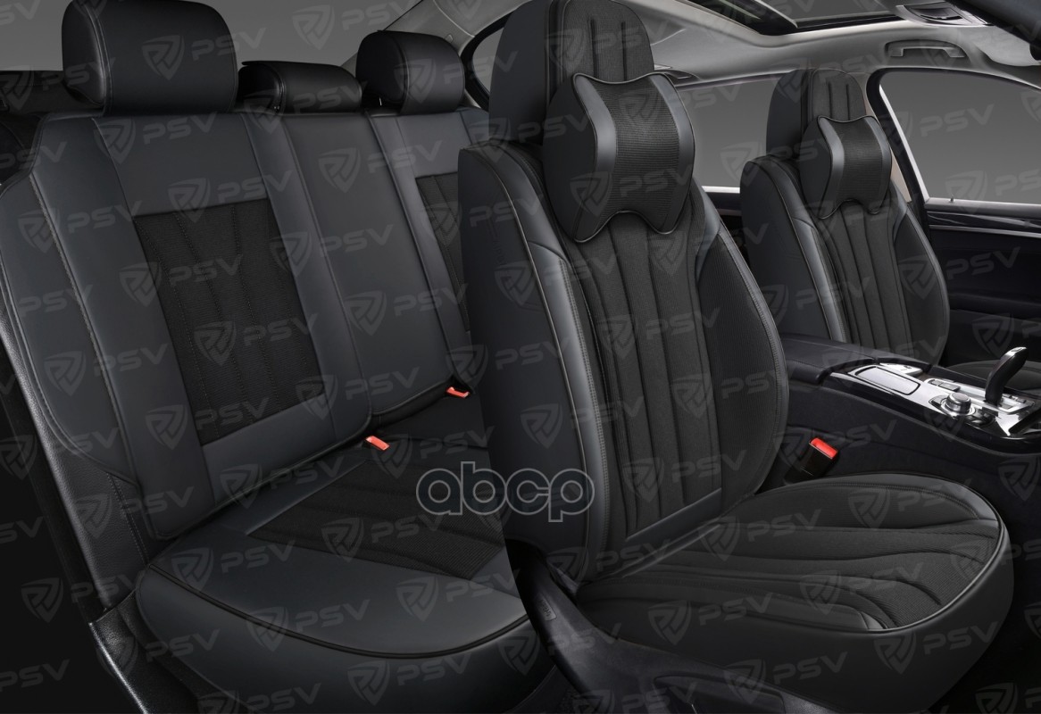 Накидка на сиденье массажная PSV Wood Pro Front экокожа со вставками из полиэстра и дерева серая