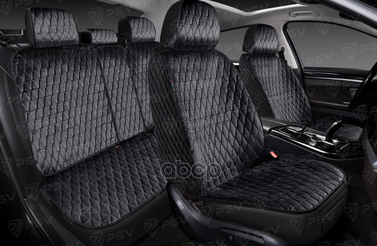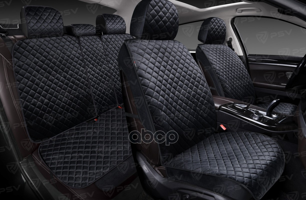 Накидки 3D PSV Loto Next (Черный/Отстрочка черная), комплект на весь салон, велюр, стежка ЛОТО