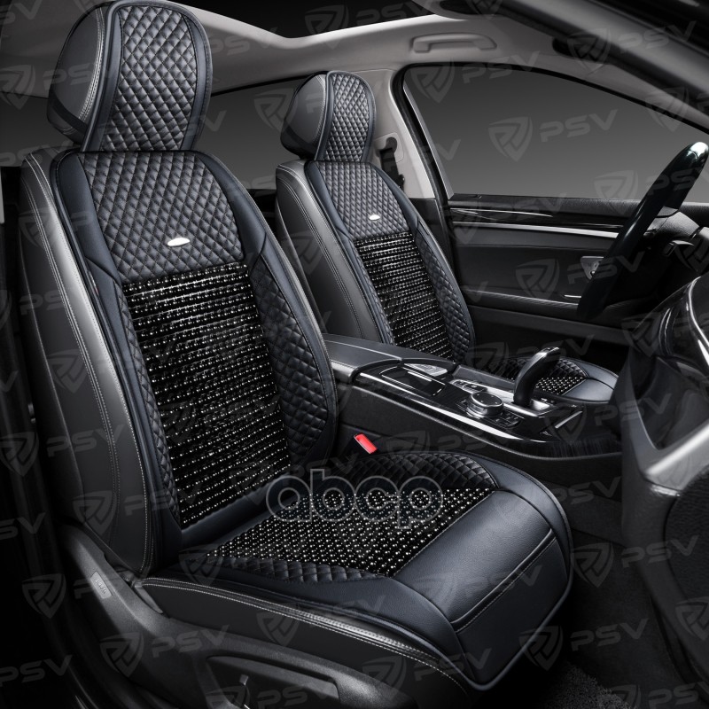 кидка на сиденье массажная PSV WOOD ROMB экокожа со вставками из полиэстра и дерева черная