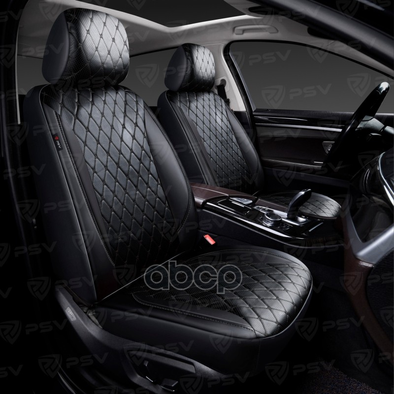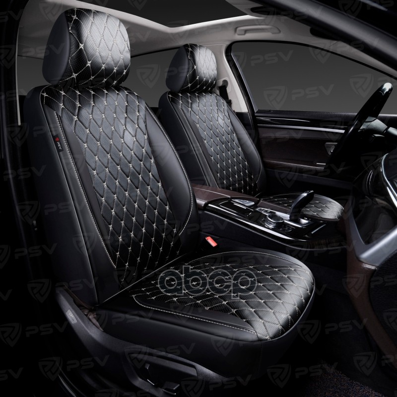 Чехлы PSV Graf Next 2 FRONT (Черный/Ромб белый "Бабочка"/отстрочка белая), ромб + экокожа 138158