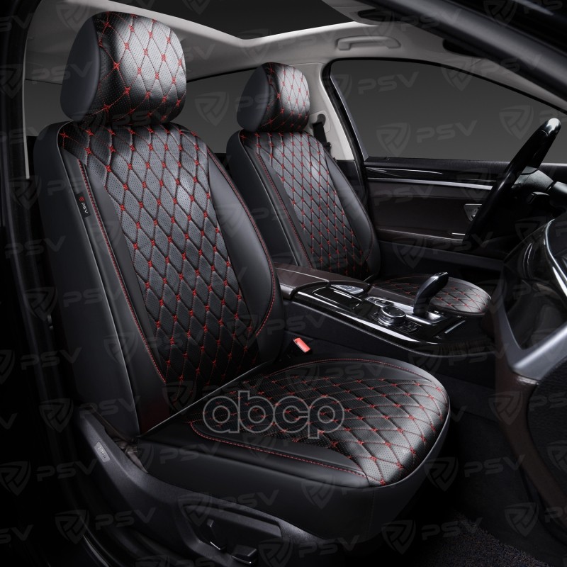 Чехлы PSV Graf Next 2 FRONT (Черный/Ромб красный "Бабочка"/отстрочка красная), ромб + экокожа 138161