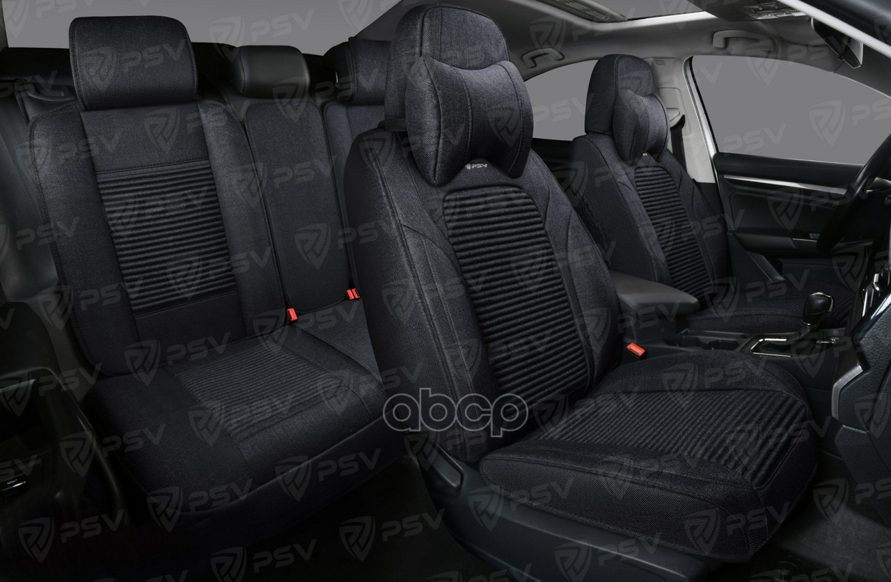 Накидки 5D PSV Len Next Черный/Отстрочка черная,лен,ромб Звезда,комплект 4шт (5 предметов)