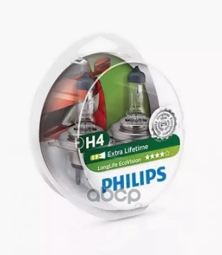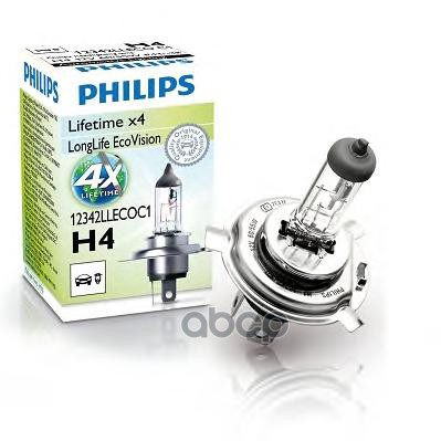 Автолампа PHILIPS 12342LLECOC1 H4 12V 60/55W P43t LongLife EcoVision (К1/10/100)