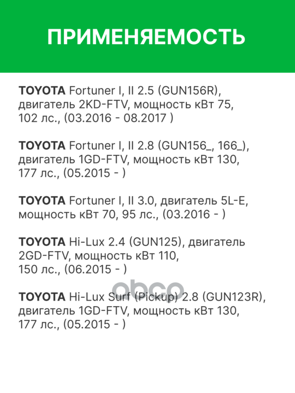 | Фото | Бренд | Номер | Описание |